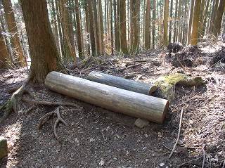 ___(植林地の中の登山道)______________(丸太の腰掛)