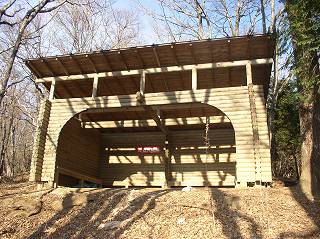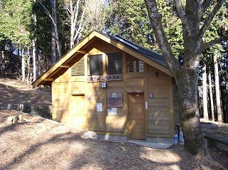 神社の近くに展望台と避難小屋を兼ねたログハウスタイプの休憩所があって、山小屋風の