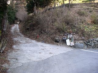その上にある登山届けのポストから簡易舗装の急坂を登ります。