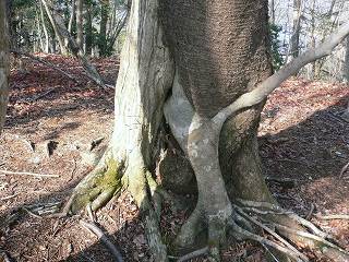 種類の異なる3本の木が 合体しようとしているのか取っ組み合いをしているのか・・