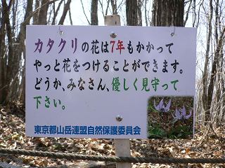 (カタクリの保護を呼びかける案内)