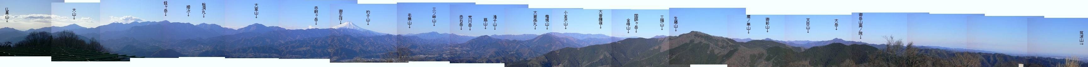 西には大山〜蛭ヶ岳と富士山が見えて、陣馬山からは見えなかった相模湖も見えました。