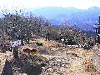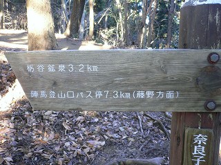 陣馬山の山頂から25分歩いた所にある奈良子峠で栃谷鉱泉の登山道と合わせます。