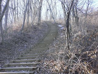 _____(登山口の階段)___________(長いうえに傾斜のきつい階段)