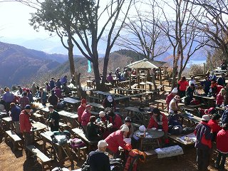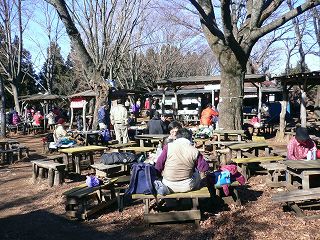 店の前に沢山のテーブルが並んでいて お客の数も盛り上がり方も陣馬山とは比べもの