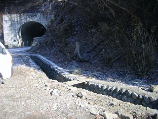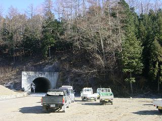 (踊平トンネルと猟師の車)