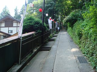 _______(神代欅)___________(登山道の両脇に並ぶ土産物屋さん)