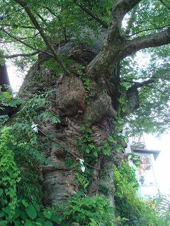 その上で日ノ出山からの道と合わせた所に樹齢1000年・樹高30メートルの神代欅(けやき)が
