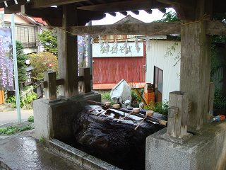 土産物屋さんの先から武蔵御獄神社の境内に入るので、その前に手水場で清めます。