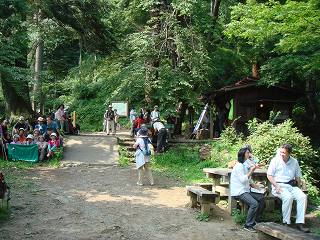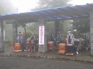 _(レンゲショウマ群生地の案内)_______(前回行われていた青梅太鼓演奏会)