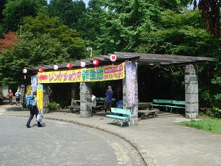 レンゲショウマの群生地は御岳平に並ぶ土産物売り場の右奥にあります。