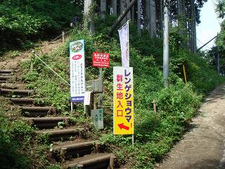 _(レンゲショウマの群生地入り口)________(沢山の人で賑わう群生地)