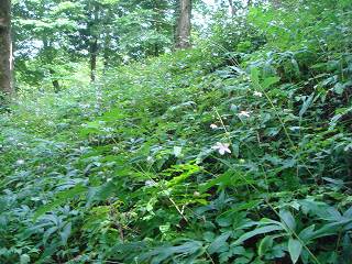 __(群生地のレンゲショウマ)__________(森のランプと言われます)