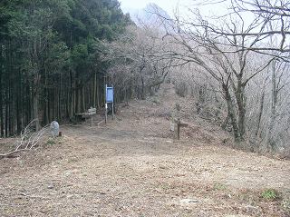 鳥首峠から30分下った所に数軒の廃屋があって、その先で開けた場所に出ると 左上に