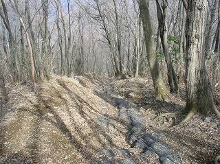 急坂を下って登り返した所が横倉山で、快適な稜線歩きが続いた後 再び急坂を下った所に