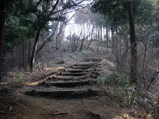 _____(平らな登山道)_____________(稜線の前にある階段)