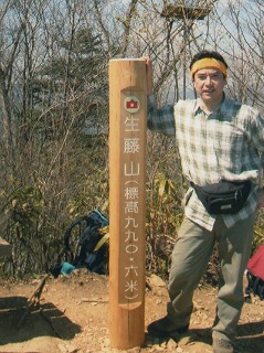 三国山から北に200mほど行った所でガレ気味の登山道を登った所が生藤山の山頂です。