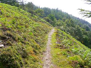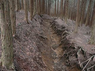 その先で植林地に入ると部分的に荒れた所もありますが、全体的には なだらかで歩き