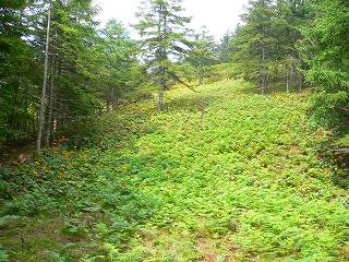 (防火帯に群生するワラビ)