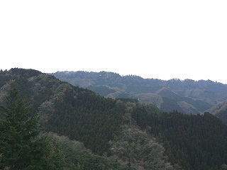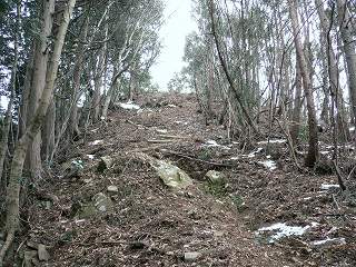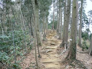 この時期は落葉していたので梢の間に多少の景色が見えましたが、登山道が植林地と
