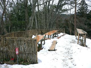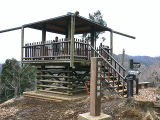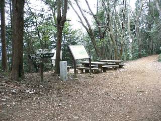 分岐から20分歩いた所にあるコンピラ山に簡単な作りのテーブルがありました。