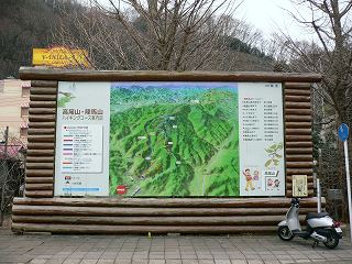 ____(京王線の高尾山口駅)_______(駅前広場にあるハイキングコース案内図)