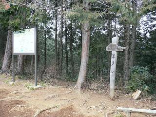 草戸峠から5分歩いた所が最初の目的地の草戸山で、切り開かれた山頂に設置された