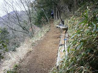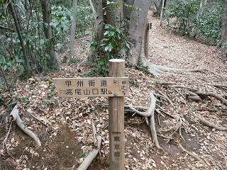 仮設トイレの先から左の植林地に入って20分ほど水平の道を歩いた所で城山方面の道と