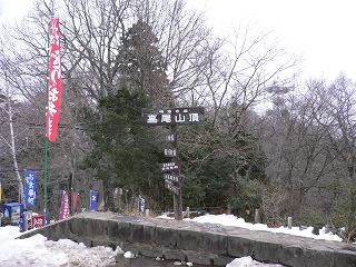 合わせたら そこから右にある石段を登って高尾山の山頂に着きましたが、雪が残る山頂は