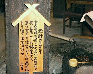 高橋家の店内には屋根を突き抜ける柿の木(暖簾の上の屋根に出ている木)が生えていて、