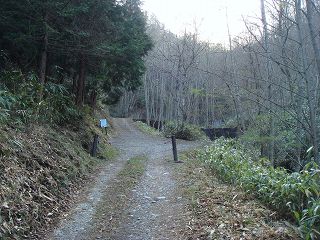 この分岐から道なりに左の広い道を行くと唐松尾山と笠取山で、和名倉山は ここから右(東)