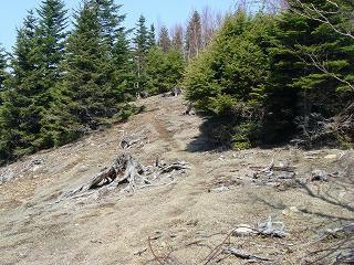 将監峠から笠取山に向かう登山道は2本あって、気分的には西の山腹を巻く広い道を登り