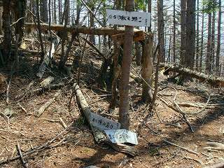 長い急斜面に うんざりした頃、朝 見送った七ツ石尾根の標識がある所に出ました。