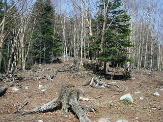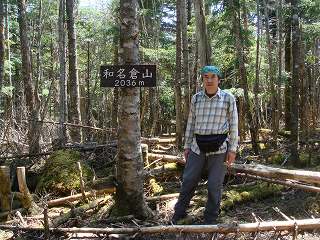 焼け跡の斜面から登り返してコメツガ林に入ると、すぐに和名倉山の山頂があります。
