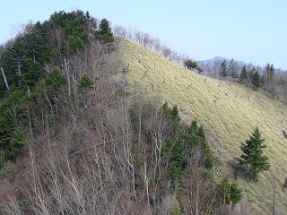 将監小屋から傾斜のきつい草地を登って将監峠に着きました。
