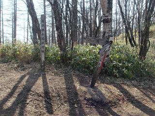 牛王院平から遭難の碑を見送って5分歩いた所に山ノ神土の分岐があります。
