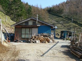 庭先に流れっぱなしの水場がある自炊場があって、その隣にイワナとヤマメが泳ぐ池と