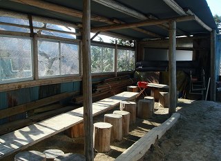 将監小屋は青い波板トタン張りで、山小屋というより民家のような作りです。