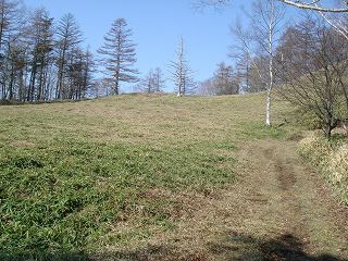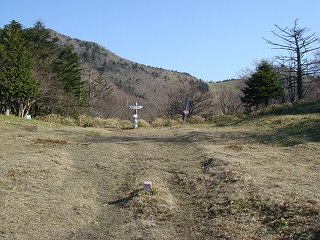 将監峠から荒れた登山道を登ると見晴らしの良い丘があって、その先にある牛王院平の
