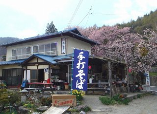 山梨県の丹波地区にある道の駅が駐車場で、施設は川に下りて橋を渡った所にあります。