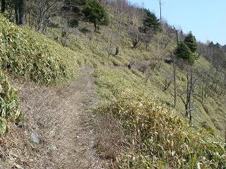 山ノ神土の分岐付近は藪っぽいが、すぐに稜線を巻いた快適な登山道に出ます。