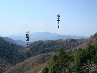 ____(稜線を巻く登山道)__________(登山道から見た将監峠と富士山)