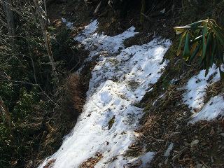 その先にあるリンの峰の北西を巻く登山道は日陰で かなりの雪が残っていました。