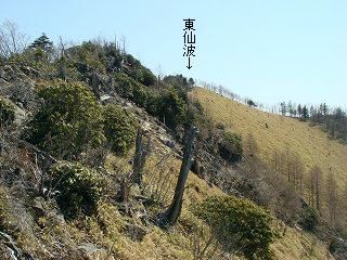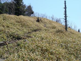 ビューポイントの露岩から少し下って笹原の急斜面を登った所が東仙波です。
