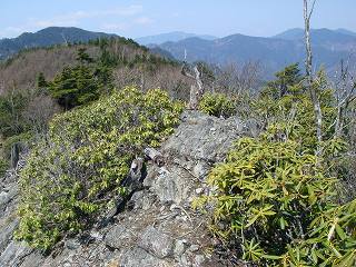 __(シャクナゲの中を歩く登山道)________(ここから見えた雲取山)