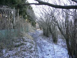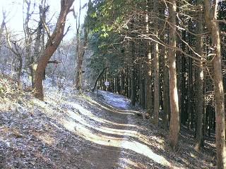 (雑木林と植林地の間を歩く登山道)