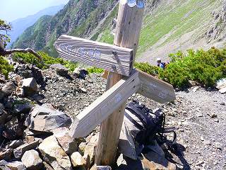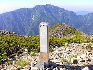 (百間平に立つ道標、後ろは聖岳)