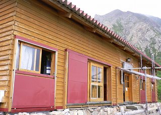 _______(荒川小屋)_____________(木目がキレイな 食堂)