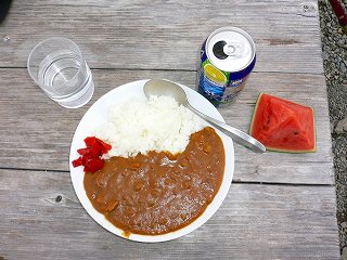 (荒川小屋のカレーライスとスイカ)