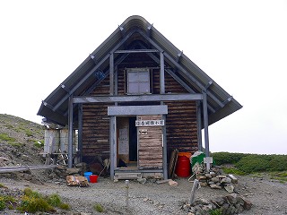 荒川中岳から5分歩いた所にある中岳避難小屋は高山裏避難小屋と同じタイプの古い